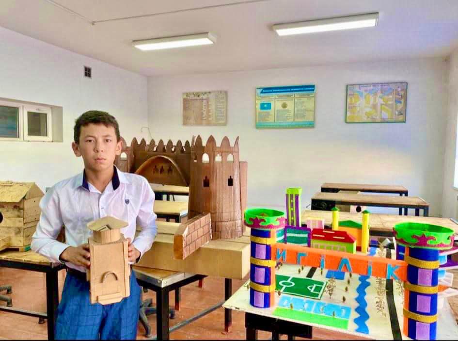 — Макет құрастыру, жапсыру, желімдеу техникасымен 6 сыныптан айналыса бастадым. Әр бөлшекті шын көңілмен жапсырып, қиялымдағы ғимараттардың макетін дайындау мен үшін қиынға соқпады. Себебі әр ісіме қатты мән беріп әзірлегенді және жасаған дүниемнің сапалы шығуын қадағалаймын. Бұл сүйікті ісіммен айналысқан маған ұнайды, жұмыс барысында ойыма ерекше шабыт пен жаңа идеялар келе бастайды, — дейді жас сәулетші.