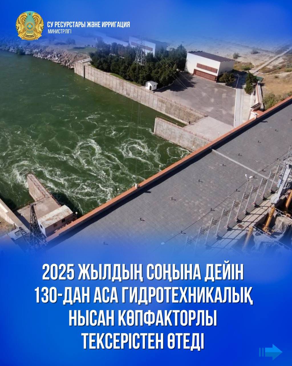 🗣«Жаңа Су кодексіне сәйкес, гидротехникалық нысандардың иелері әр бес жыл сайын өздеріне тиесілі құрылыстарға көпфакторлы тексеру жүргізуге міндетті. Тексеріс нәтижесінде қауіпсіздік декларациясы жасалып, ол бассейндік су инспекциясында тіркелуі қажет»,