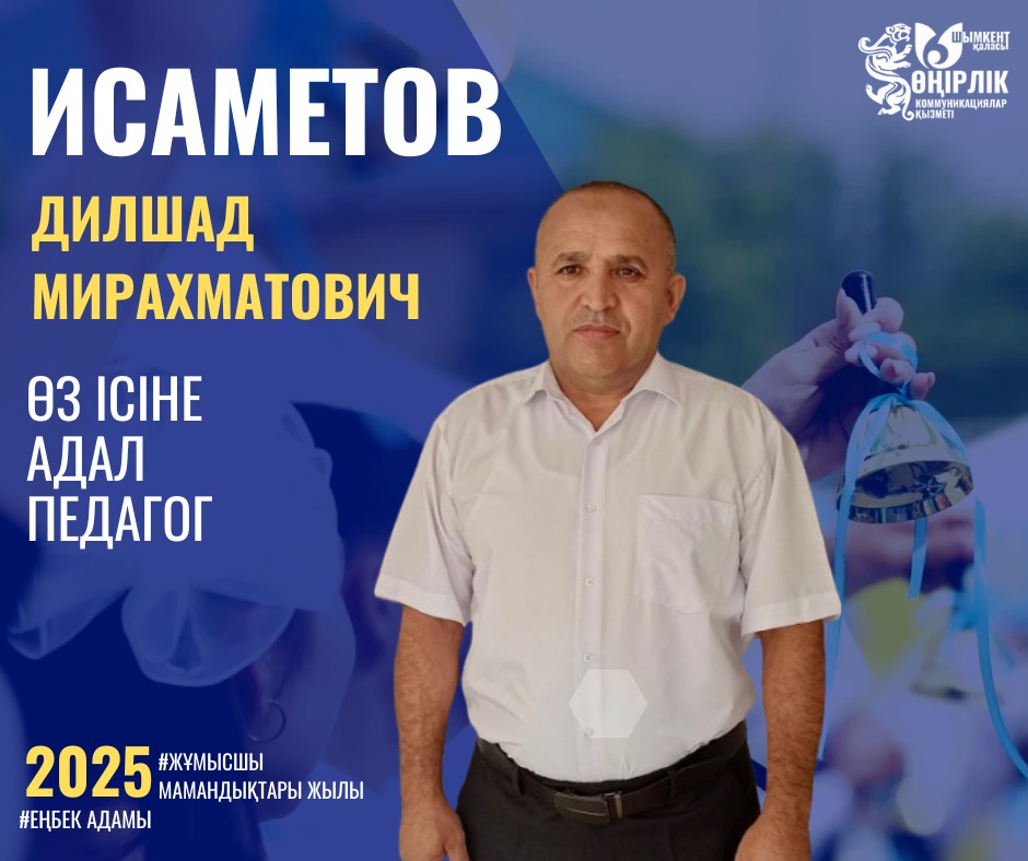 Исаметов Дилшад Мирахматович — өз ісіне жауапкершілікпен қарайтын, білікті де талапшыл дене шынықтыру пәнінің мұғалімі. Ол мектеп оқушыларына волейбол ойынын үйретуде үлкен жетістіктерге жетіп, спортқа деген қызығушылықты арттыра білді. Сабақ барысында оқушылардың физикалық қабілеттерін дамытуға, денсаулықтарын нығайтуға және командалық рухты қалыптастыруға ерекше көңіл бөледі.