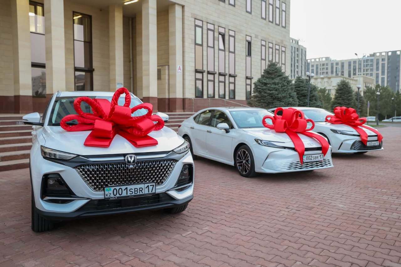 Жеңімпаздарға демеушілер есебінен автокөліктер табысталды.