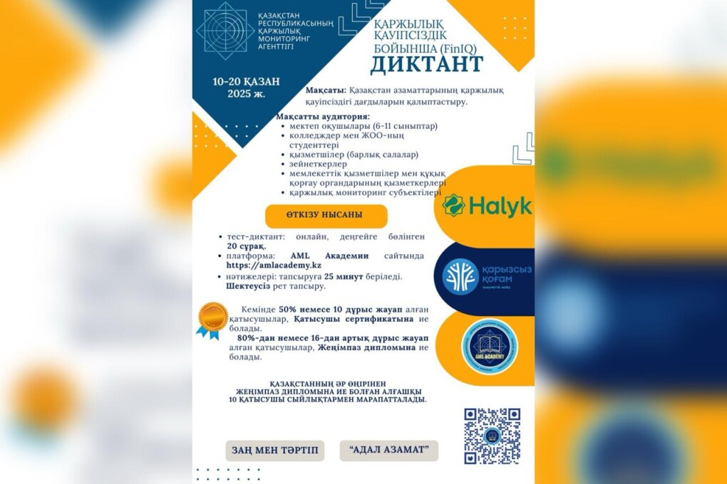 «ФинIQ» республикалық диктантына қосылыңыз – қаржылық сауаттылығыңызды арттырыңыз!