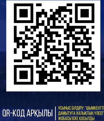 QR-КОД АРҚЫЛЫ ҰСЫНЫС БІЛДІРУ ЖҮЙЕСІ: «ШЫМКЕНТТІ ДАМЫТУҒА ХАЛЫҚТЫҢ ҮЛЕСІ» ЖОБАСЫ ІСКЕ ҚОСЫЛДЫ